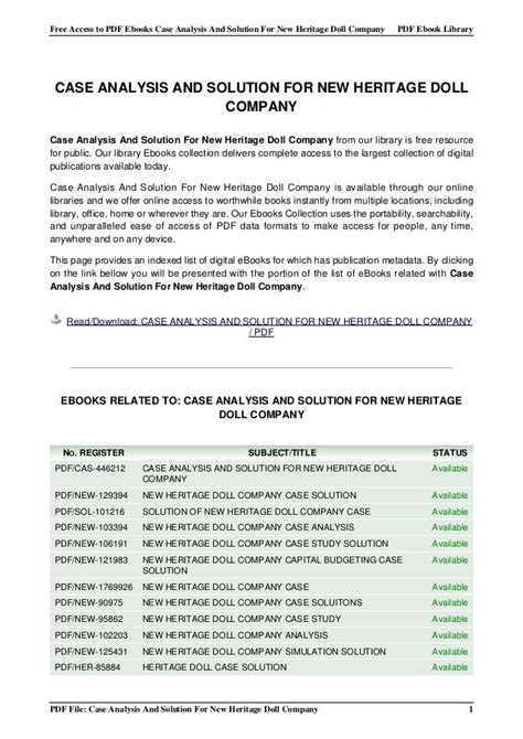 KOQ - Online PDF CASE ANALYSIS AND SOLUTION FOR NEW HERITAGE DOLL COMPANY Reader Google eBookstore